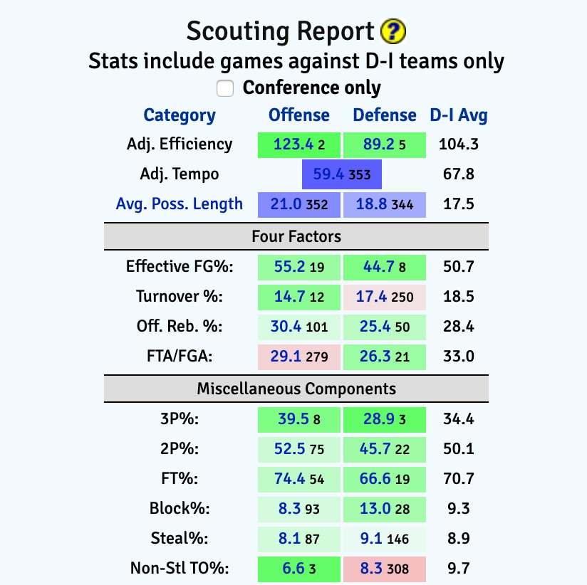 Below is Virginia's advanced stats profile, courtesy of kenpom.com.