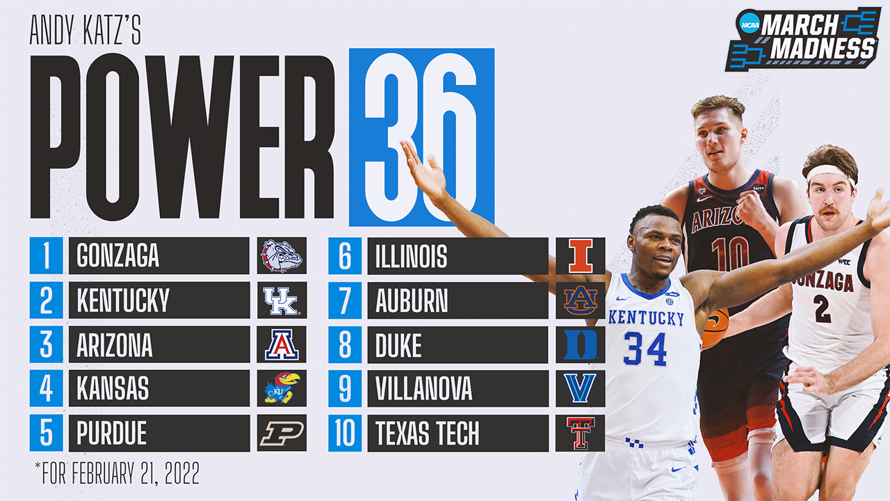 And while there are significant changes in the Power 36, those alternations don’t begin until No. 4 with the top three — Gonzaga, Kentucky and Arizona — all looking the part of possible Final Four teams again last week.
