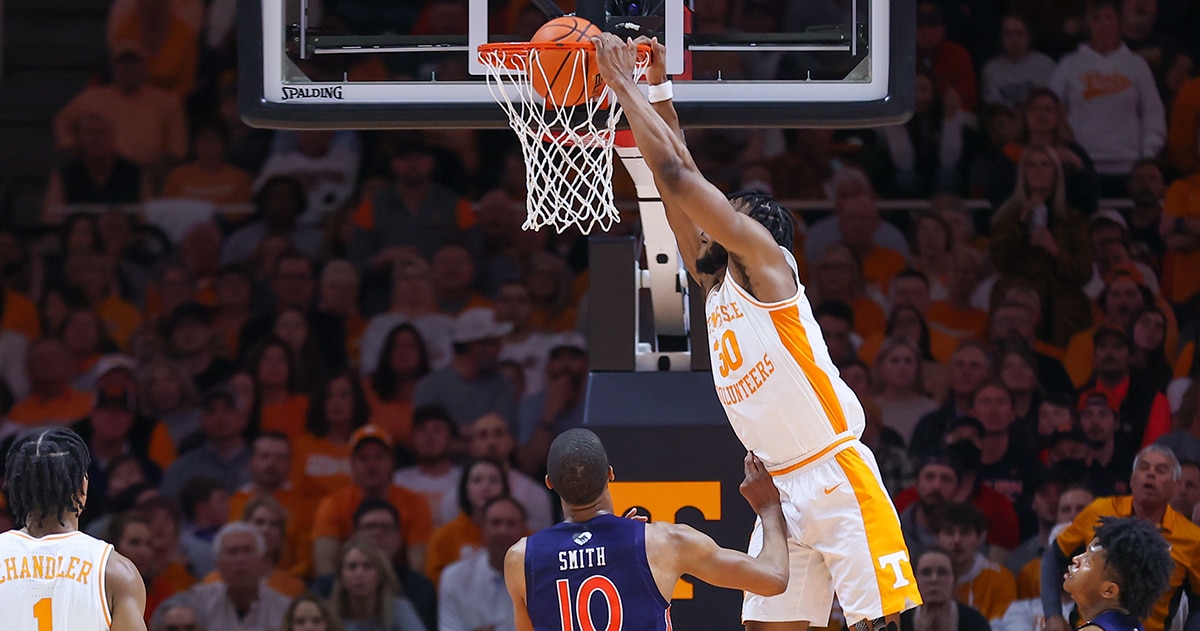 Despite making just 20 of 61 shots, committing 18 turnovers and allowing No. 3 Auburn's star freshman Jabari Smith to go off for 27 points and eight rebounds, No. 17 Tennessee picked up another massive win in Knoxville, defeating Auburn 67-62. The Vols beat the Kentucky Wildcats at home last week, as well as Arizona in December, so Tennessee has already beaten three of the nation's best inside Thompson-Boling Arena this season.