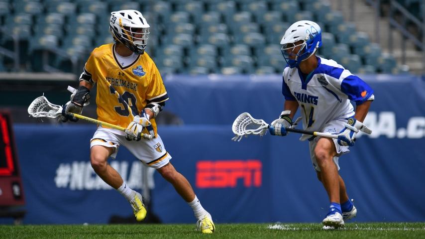 The 2021 DII men's lacrosse championship is Sunday, May 30, at Pratt and Whitney Stadium at Rentschler Field in East Hartford, Connecticut. Merrimack (above) is the defending champion.