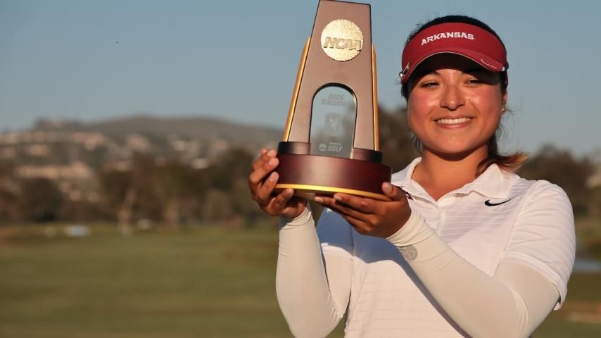 A two-time NCAA individual champion — the first female to accomplish the feat — Zhang twice set the NCAA single-season scoring average record, with a 68.81 sophomore-season scoring average besting a 69.68 freshman average. A two-time First Team WGCA All-American, Zhang also established the NCAA career scoring average record with a 69.24 average in 62 career rounds.